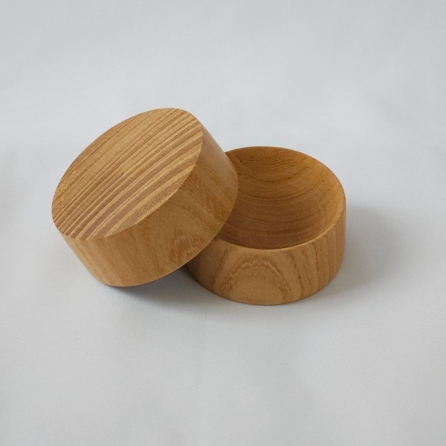 サイズ:直径 約48mm 高さ 約30mm 深さ 約20mm 材料:国産木材、こけしの製造の端材 樹種:楓(白)、欅(茶色)、槐(黒)(2022 年 12 月現在) 用途:蜜蝋・ハンドクリーム、 日常使いのアクセサリー入れ 注意:液体、粘性のあるもの、 食品を入れることは推奨せず 3種のケース こけし生地職人が、ろくろの技術で、一つ一つ手でつくる 大量生産の工業製品にはない、自然の木による『ゆらぎ』 できあがったケースは、また一つ一つ検品し、記録される 手の中で使い込むことで艶を増し、木を熟成させる楽しみ 自分の手にしっくりくるひと品 緩さ、かたさ、木目など、 30年使った木と時がどんな表情をしているのかを想像し、 わくわくしながら、選んでほしい